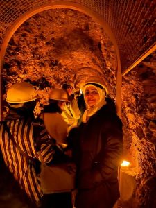 و در ادامه مسیر به شهر زیبا و عجیب زیر زمینی رفتیم که پس از تهیه بلیت و کلاه بر سر کردن به همراه راهنما وارد این دستکند تاریخی و مهیج شدیم. هرچقدر که جلوتر می رفتیم بیشتر به هنر معماری اجداد ایرانی خودمان افتخار می کردیم. تونلی در 5 طبقه در زیرزمین حفر شده بود که ظاهرا در زیر کل شهر تفرش ادامه دارد و مسئولان میراث فرهنگی همچنان در حال کنکاش و جستجوهای جدید تری هستند.